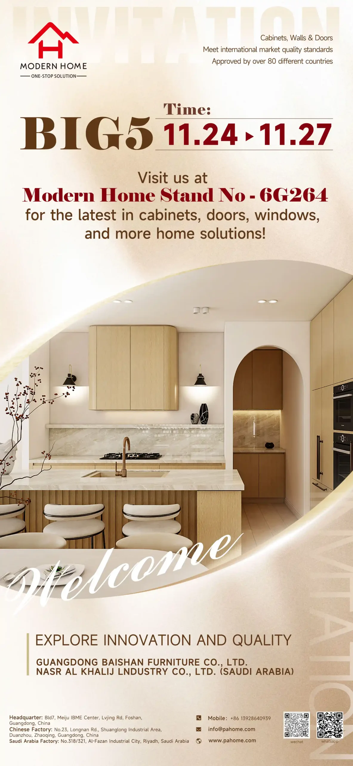 Established in 2009, Modern Home is a top Middle East cabinet brand with a factory and showroom in Riyadh. Equipped with the largest fully automated production line in Saudi Arabia, we offer a complete range of cabinets, wooden doors, windows, and bathroom products. With competitive tariff advantages, Modern Home is a trusted and cost-effective partner for developers and contractors. Our 250,000 sqm Dammam factory is under construction to support future growth.