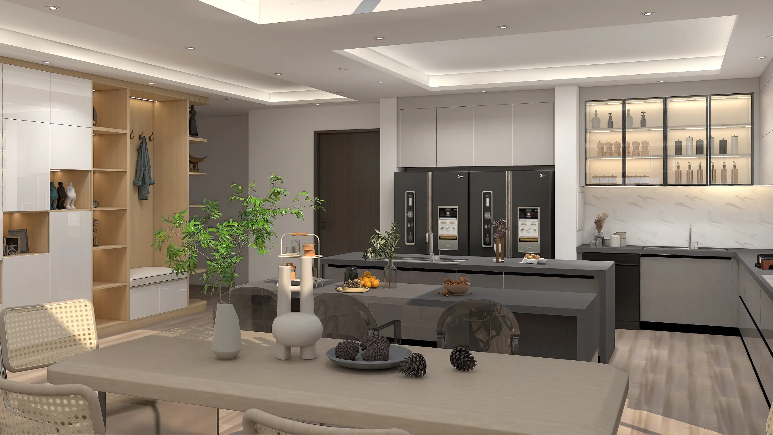 - High-Gloss White Finishes: Glossy lacquer in neutral tones adds reflective sophistication, aligning with preferences for durable, easy-clean surfaces in modern remodels.